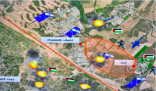 وتحدث جيش الاحتلال عن قصف كثيف تتعرض له منطقة إيرز، بقذائف الهاون فيما أكد القسام دك تلك الموقع بالقذائف والصواريخ لقطع النجدات عن الآليات المشتعلة التي تم استهدافها.