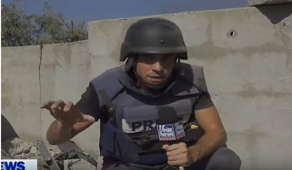 وظهر مراسل “فوكس نيوز” في تغطية مباشرة وهو يجلس على الأرض إلى جانب جدار بحالة من الذهول والرعب، ويقول إن الجيش الإسرائيلي يخوض تبادلاً لإطلاق النار مع مقاتلي حماس داخل قطاع غزة.