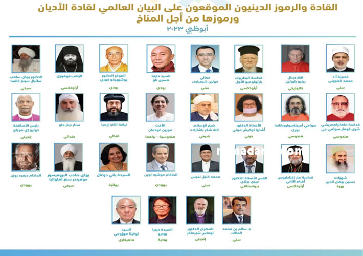 استقبل النظام الإماراتي بقيادة محمد بن زايد في أبوظبي، حاخامات داعمين للاحتلال الإسرائيلي بحجة عقد ما يسمى “القمة العالمية لقادة الأديان من أجل المناخ” التي أقيمت في 6 تشرين الثاني/نوفمبر 2023.