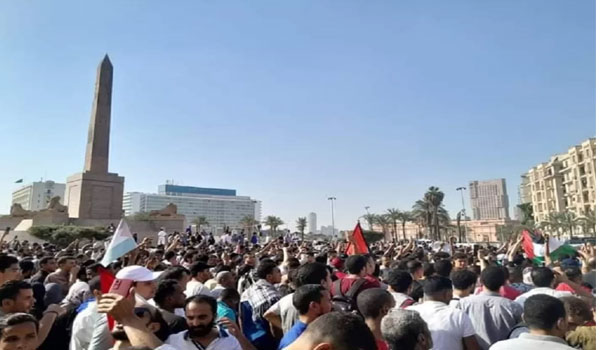 لكن وأثناء وجود المحتجين في الميدان تغيّرت الهتافات من التركيز الفلسطيني إلى هتافات كانت تُسمع غالبًا في سنة 2011، وموجهة إلى السلطات المصرية: “عيش، حرية، عدالة اجتماعية!”.
