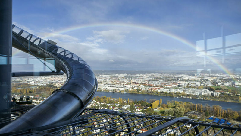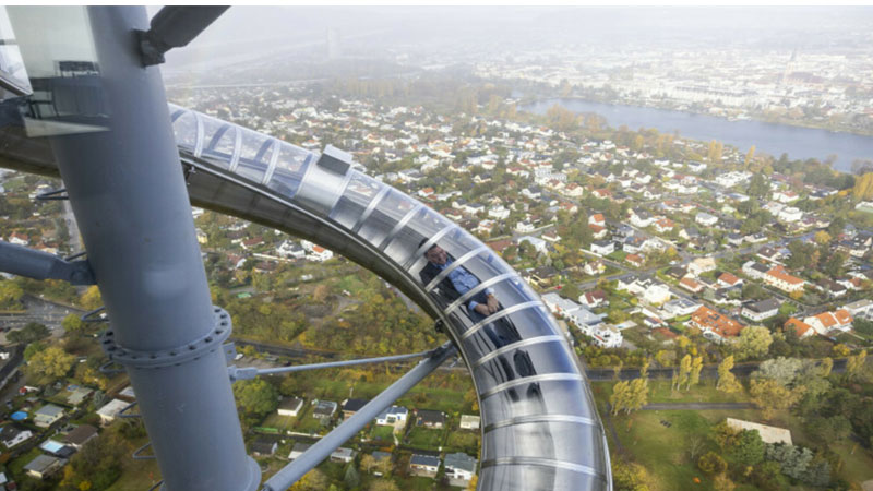 وحسبما ذكرت الصحف النمساوية الصادرة اليوم ، يمكن للزوار التزحلق من الطابق الأوسط على الجانب الشمالي للبرج من ارتفاع 150 متراً، وبفضل مجرى الانزلاق، يمكن للأشخاص الاستمتاع بسرعة تصل إلى 18 كيلومترًا في الساعة خلال 7 إلى 9 ثوانٍ على منحدر بزاوية 29 درجة ، ويعد إيجاد مغامرين لديهم القدرة على تجربة هذه الزحليقة تحديًا حقيقيًا للقائمين على إنشاء الزحليقة، خاصة وأنه لم تتم تجربتها حتى الآن
