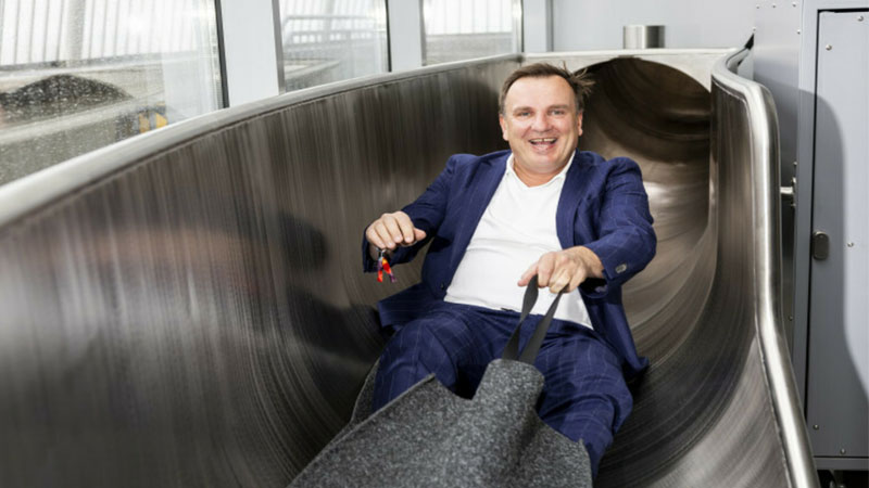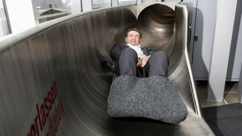 تتكلف هذا المشروع حوالى 940,000 إيرو للزحلقة المصنوعة من البولي كربونات من تصميم الفنان الألماني كارستن هولر،وسوف وأصبحت متاحة للزوار من يوم أمس الأربعاء ، ويتم نقل الزوار إلى أعلى البرج على مصاعد كهربائية والناقلات من أجل المشاركة في المرح.