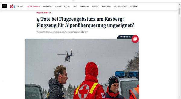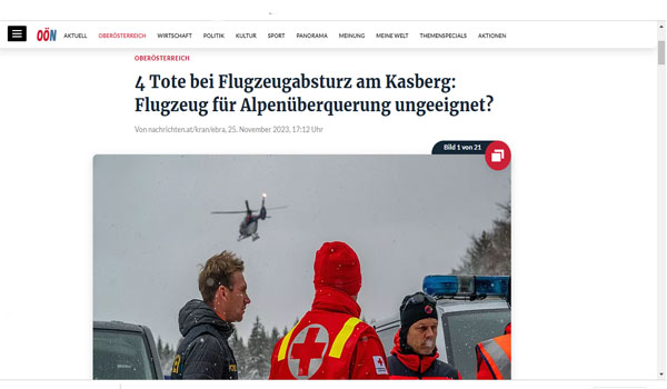 أعلنت الشرطة النمساوية اليوم السبت الموافق 25 من نوفمبر 2023 ، أنها تمكنت من انتشال جثامين أربعة أشخاص في أعقاب تحطم طائرة بمنطقة جبلية، غربي البلاد.