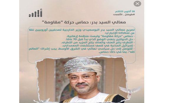 واستذكرت روان تصريحات سابقة لوزير الخارجية العماني بدر البوسعيدي، الذي أكد أن حركة المقاومة الإسلامية حماس حركة مقاومة وليست منظمة إرهابية.