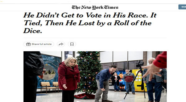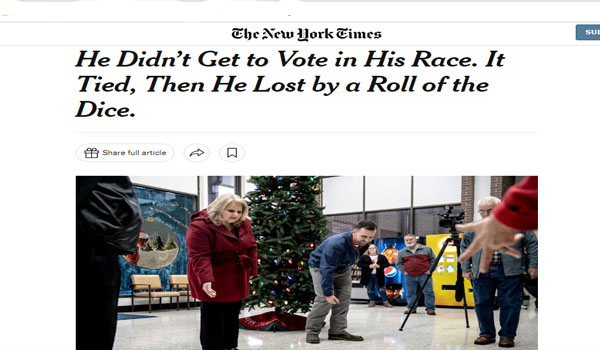 وقالت صحيفة «نيويورك تايمز» أن انتخابات مجلس مدينة هوكسي في ولاية آركنساس، انتهت بالتعادل 223 مقابل 223، وفقًا لمسؤول انتخابي، بين مرشحين هما كليف فارمر وبيك لاينبو، مما اضطر اللجنة الانتخابية لكسر التعادل برمي أحجار النرد، حيث خسر المنافس فارمر الذي حصل على 4، أمام شاغلة الوظيفة، بيكي لاينبو، التي حصلت على 6، ليقوم بعدها فارمر بمصافحة منافسته وتهنئتها.
