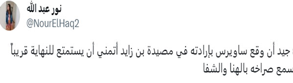 وشاركت نور عبدالله تعليقاً جاء فيه: “شئ جيد أن وقع ساويرس بإرادته في مصيدة بن زايد أتمني أن يستمتع للنهاية قريباً سنسمع صراخه بالهنا والشفا”.