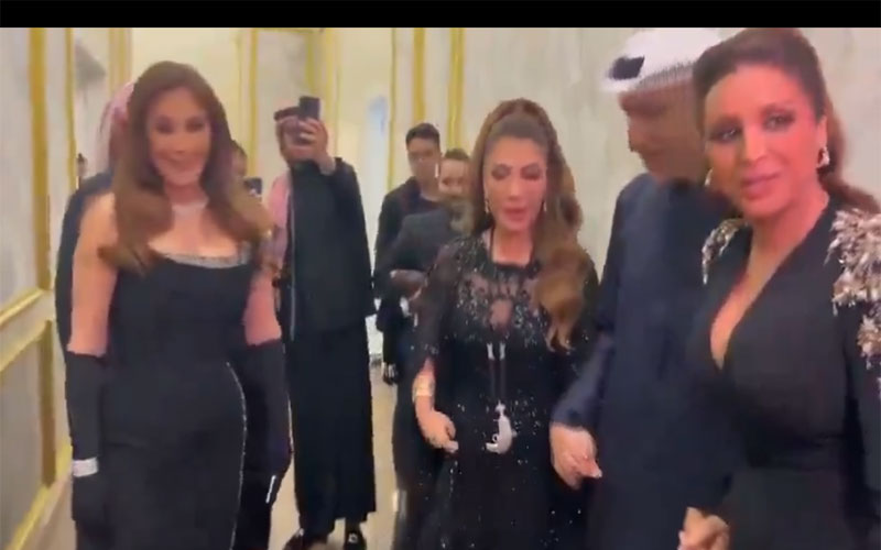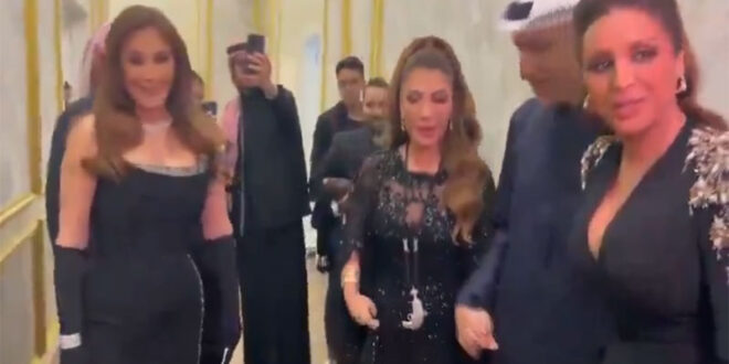 وانتشر مقطع مصور جمع الفنانات الثلاث على هامش حفل ما يسمى “ليلة نجمات العرب” ضمن فعاليات يصر محمد بن سلمان على تحدي المشاعر العربية بها، رغم المجازر المستمرة بحق الفلسطينيين في غزة ورغم المآسي التي تمر بها شعوب الأرض خاصة السودان القريبة من المملكة.