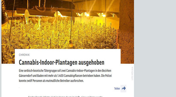 وأوضح الوزير أن قوات الأمن من مكتب الشرطة الجنائية لولاية النمسا السفلى نجحوا في توجيه ضربة مهمة ضد الجريمة المنظمة، مضيفًا أنه خلال عملية قامت بها قوة مكافحة المخدرات في النمسا السفلى تم اعتقال سبعة أشخاص تتراوح أعمارهم بين 28 و48 عامًا متورطين في إنشاء مزارع لنبات القنب المخدر وتم ضبطهم في منطقة شتراسهوف.