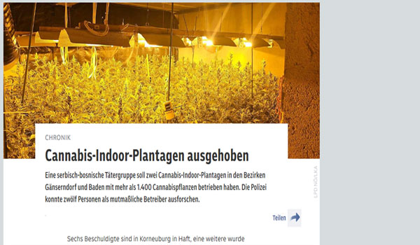 أعلن وزير الداخلية النمساوي، جيرهارد كارنر، القبض على سبعة من تجار المخدرات من الصرب والبوسنيين والذين كانوا يديرون مزارع القنب في ولاية النمسا السفلى.