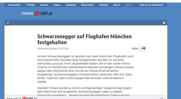 تصدر النجم الأمريكي الشهير النمساوى الأصل أرنولد شوارزنيجر، موقع البحث “جوجل”، بعد احتجازه في مطار ميونيخ الألماني، لمدة 3 ساعات، وخضوعه للتحقيق.
