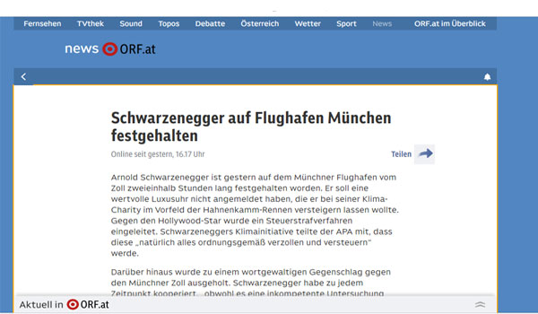النجم الشهير، فوجئ بعد وصوله إلى ألمانيا، في طريقه إلى النمسا، بمطالبة إدارة التفتيش الجمركي باحتجازه، بدعوى حيازة ساعة باهظة الثمن، دون تسجيلها في إخطار السفر، وهو ما يعد مخالفة، تستوجب التحقيق، وسداد غرامة ضريبية.
