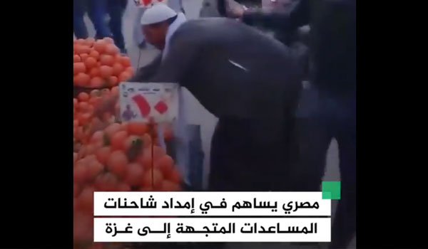 فيديو مثير لبائع خضار مصري.. عندما رأى شاحنات محمَّلة بالمساعدات متجهة لقطاع غزة