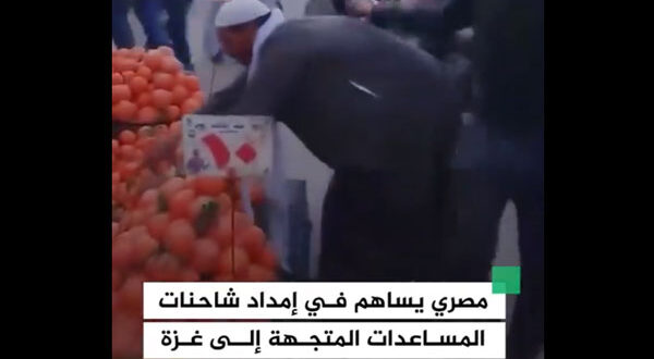فيديو مثير لبائع خضار مصري.. عندما رأى شاحنات محمَّلة بالمساعدات متجهة لقطاع غزة