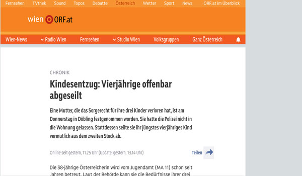 اعتقلت السلطات الأمنية امرأة في فيينا بتهمة اختطاف أطفالها الثلاثة، وذلك بعد أن فقدت حضانتهم بناءً على طلب من مركز رعاية الأطفال.