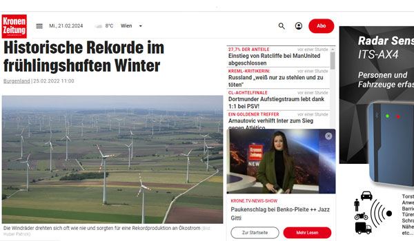 توقع خبراء الأرصاد الجوية في النمسا أن يكون شهر فبراير الجاري “الأكثر دفئا في تاريخ قياسات النمسا”، بعدما شهد تسجيل درجات حرارة قياسية، أكثر دفئا بنحو 7 درجات، مقارنة بمتوسط درجات الحرارة المسجلة خلال الفترة من عام 1991 إلى 2020.