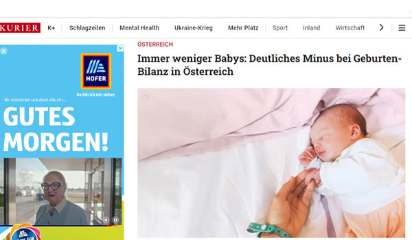وذكرت أن النمسا تعاني من عجز في المواليد للسنة الرابعة على التوالي حيث سجلت 88744 حالة وفاة وذلك أعلى من عدد المواليد بمقدار 11448 حالة.