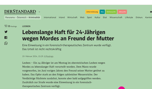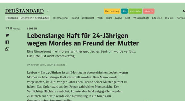 أصدرت محكمة في ليوبن، بولاية شتايرمارك، حكمًا بالسجن المؤبد على شاب يبلغ من العمر 25 عامًا، يوم الاثنين، بعد إدانته بقتل صديق والدته عمدًا.