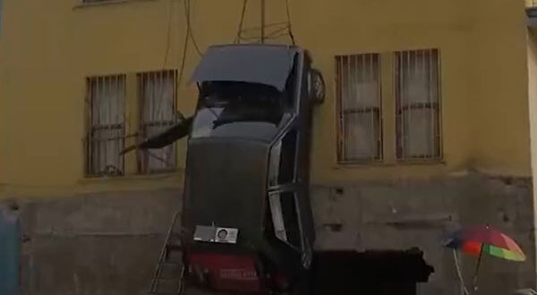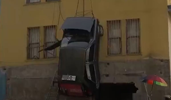 وأظهر مقطع مصور نشرته وسائل إعلام تركية “محمد آيدين” الذي قام بتعليق سيارته على سطح بنائه. قائلاً إنه يعاقبها لأنها تسببت له بمشاكل كبيرة في ولاية أنطاليا التركية.