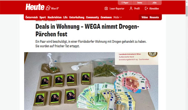 ألقت وحدة العمليات الخاصة “WEGA” التابعة لشرطة فيينا القبض على زوجين يشتبه بتورطهما في تجارة المخدرات داخل شقة بالحى الواحد وعشرين، فيينا.
