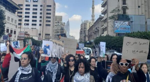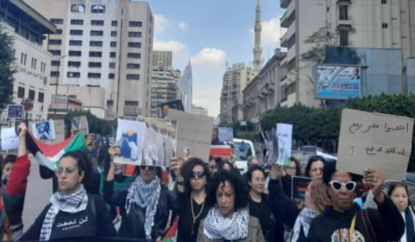 وثق مقطع فيديو خروج مظاهرة نسائية وسط العاصمة المصرية القاهرة، الجمعة 8 مارس/آذار 2024، للتضامن مع غزة، والتنديد باستمرار القصف الإسرائيلي على القطاع وإغلاق معبر رفح الحدودي مع الفلسطينيين، بالتزامن مع اليوم العالمي للمرأة الموافق 8 مارس/آذار من كل عام.