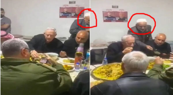 وكتب الإعلامي محمد جمال: “غانتس وزير الاحتلال الاسرائيلي (الدفاع) وعضو الكنيست شوستر على مائدة إفطار في شهر رمضان مع بعض الخونة من عائلة الزيادنة من بدو النقب”.