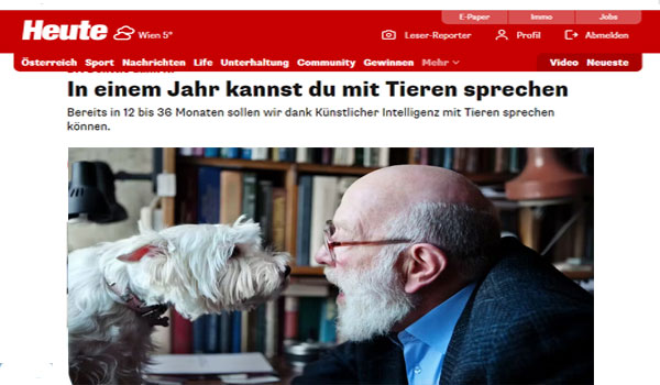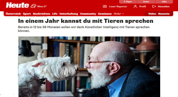 صحيفة هويتة النمساوية – التحدث مع الحيوانات أصبح قاب قوسين أو أدنى – بعد سنة من الأن