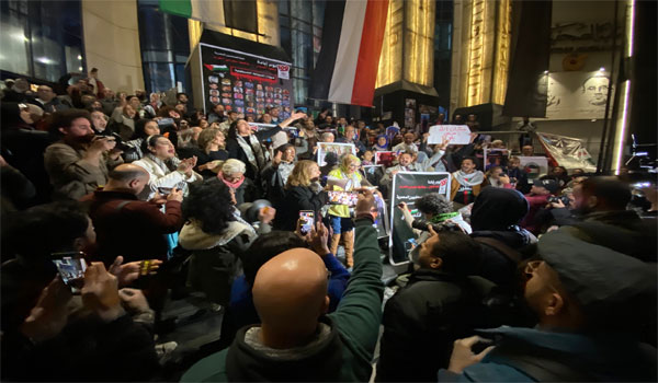 بينما ندد المتظاهرون بـ”مجزرة الطحين”، آخر مجازر الاحتلال في غزة، التي راح ضحيتها أكثر من 100 فلسطيني، طالبوا أيضاً بفتح معبر رفح أمام دخول المساعدات لغزة، وخروج الجرحى منها، ورددوا هتافات داعمة لغزة، ومنددة بالحصار.