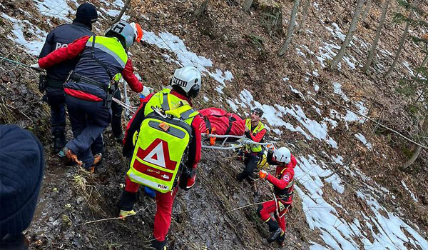 وتم إنقاذ الشاب من الغابة بواسطة نقالة ونظام إنقاذ بالحبال، ثم تم نقله على متن مروحية إلى مستشفى كلاغنفورت لتلقي العلاج اللازم.