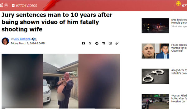 أقدم رجل من تكساس على قتل زوجته بعد اكتشافه خيانتها له، حيث وثّق مقطع فيديو مرعب لحظة إطلاق النار عليها ثلاث مرات أمام الكاميرا.