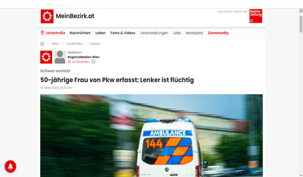 شهد الحي الثالث في فيينا حادثًا مروعًا صباح اليوم الأحد، حيث اصطدمت سيارتان ببعضهما البعض، أسفر الحادث عن إصابة أربعة أشخاص، بينهم امرأة في حالة حرجة.
