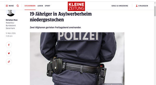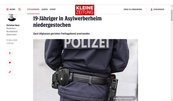 أصيب طالب لجوء من أفغانستان يبلغ من العمر 19 عامًا بجروح خطيرة، إثر طعنه بسكين من قبل شاب أفغاني آخر في مركز إيواء للاجئين في فيلدكيرخن، بالقرب من غراتس، مساء الجمعة.