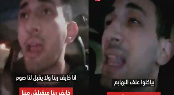 وقال الشاب الذي لم يكشف عن اسمه أو هويته في مقطع فيديو متداول داخل سيارة “أنا بتبرأ أدام ربنا من اللي بيحصل، واللي بتعمله حكومتى مع إخواتنا فى غزة”. مطالباً بإدخال الطعام والشراب للنازحين والمحاصرين في قطاع غزة.