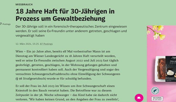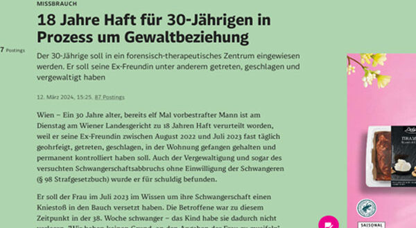 حكمت محكمة في فيينا بالسجن 18 عامًا على رجل يبلغ من العمر 30 عامًا، اليوم الثلاثاء، لركل زوجته الحامل في بطنها، مما تسبب في محاولة إجهاض.