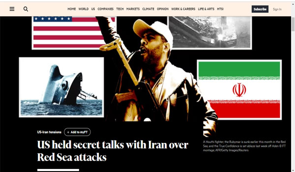 كشفت صحيفة “فايننشال تايمز” الأمريكية في تقرير لها أن الولايات المتحدة أجرت محادثات سرية مع إيران في سلطنة عمان هذا العام، في محاولة لإقناع إيران باستخدام نفوذها على الحوثيين في اليمن لإنهاء الهجمات على السفن في البحر الأحمر.