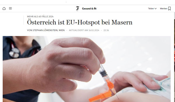 وصرح عالم الفيروسات في فيينا، لوكاس فيسيسليندتنر، أن “هذا هو عام ذروة الحصبة” وأن “الموجة الحالية من مرض الحصبة في النمسا مستمرة وتستمر”.