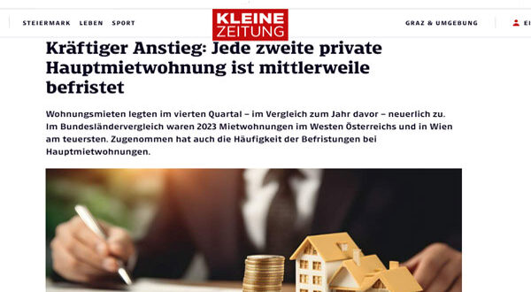 أظهرت بيانات جديدة صادرة عن هيئة الإحصاء النمساوية، اليوم الثلاثاء، أن إيجارات الشقق في النمسا استمرت في الارتفاع خلال عام 2023، مدفوعة بمعدلات التضخم المرتفعة.