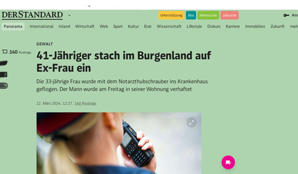 تعرضت امرأة تبلغ من العمر 33 عامًا لهجوم وحشي بسكين من قبل زوجها السابق المجري في منزلها، مساء أمس الخميس، في برايتنبرون في مقاطعة بورغنلاند.