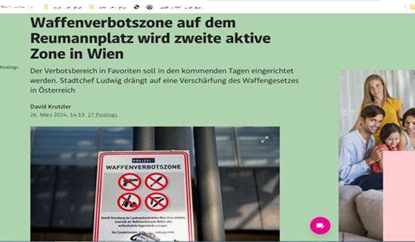 أعلنت وزارة الداخلية النمساوية عن إنشاء منطقة حظر الأسلحة في ساحة رويمان والمناطق المجاورة لها، في حي فيينا-فافوريتين، اليوم الثلاثاء، وذلك بعد تزايد حوادث الطعن في المنطقة مؤخرًا.