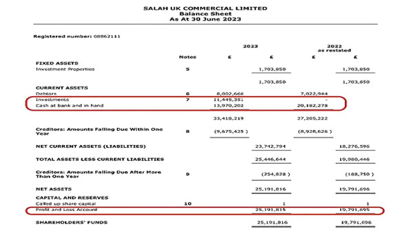 وحققت شركته التجارية “صلاح يو كيه كوميرشال” ربحا يزيد قليلا عن 5.4 مليون جنيه إسترليني بعد خصم الضرائب، وفقا لأحدث وثيقة مالية للشركة – نشرتها صحيفة “ديلي ميل” البريطانية، وتأتي أحد أرباح صلاح بعد أن جمع 27 مليون جينه إسترليني من الصفقات التجارية في ثلاث سنوات فقط.