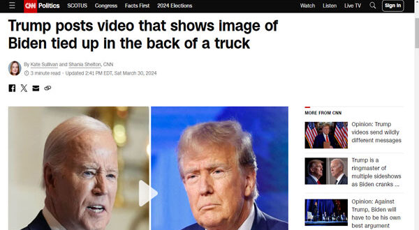 تعرّض الرئيس الأمريكي السابق دونالد ترامب لانتقادات واتهامات بالتحريض على العنف، بعد أن شارك الجمعة، 29 مارس/آذار 2024، مقطع فيديو على منصة “تروث سوشال”، يظهر خلفه الرئيس جو بايدن مقيداً وملقى في مؤخرة شاحنة.