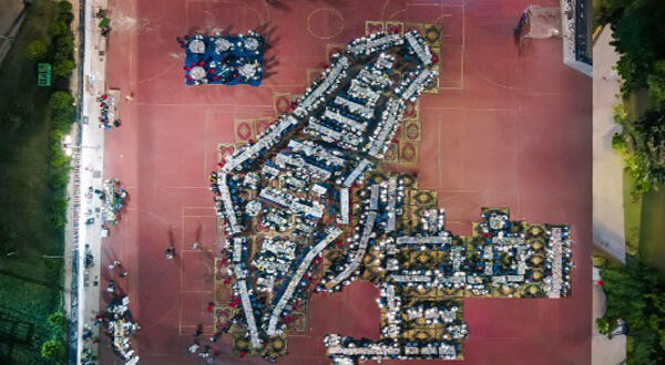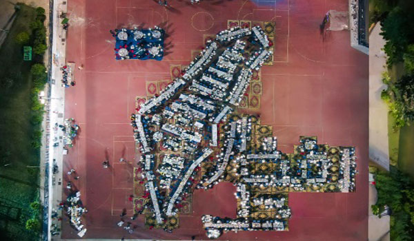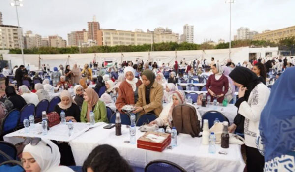 في خطوة تضامنية مع الشعب الفلسطيني، نظم اتحاد طلاب كلية الطب جامعة الإسكندرية (شمال القاهرة)، الأحد 31 مارس/آذار 2024، حفل الإفطار السنوي، داخل استاد الجامعة على شكل خريطة فلسطين.