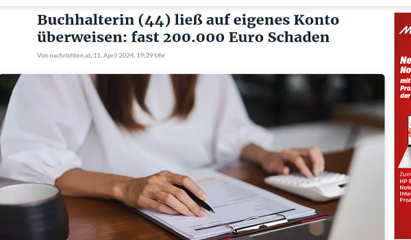 تواجه محاسبة تبلغ من العمر 44 عامًا، من فوكلبروك في ولاية النمسا العليا، اتهامات خطيرة باختلاس مبالغ كبيرة من أموال شركة عملت فيها، وذلك على مدار سنوات.