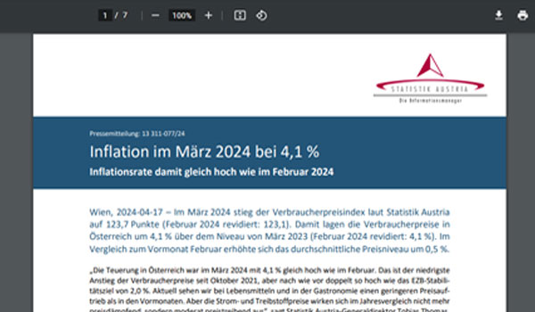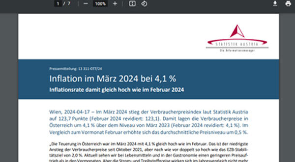 أظهرت بيانات حديثة من هيئة الإحصاء النمساوية أن معدل التضخم في البلاد ظل ثابتًا عند 4.1٪ في مارس، دون تغيير عن الشهر السابق.