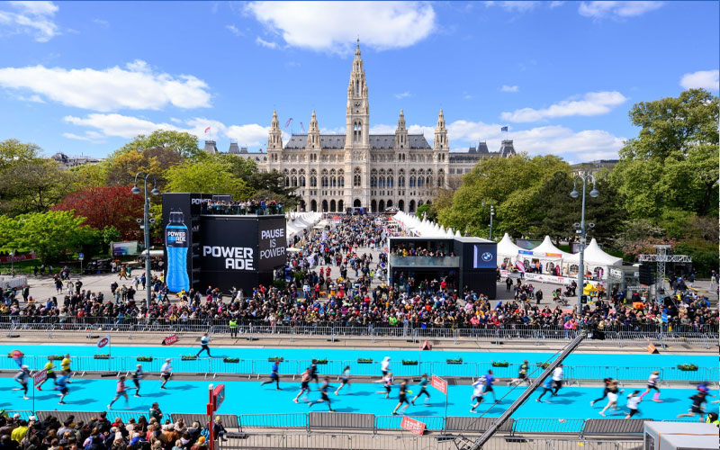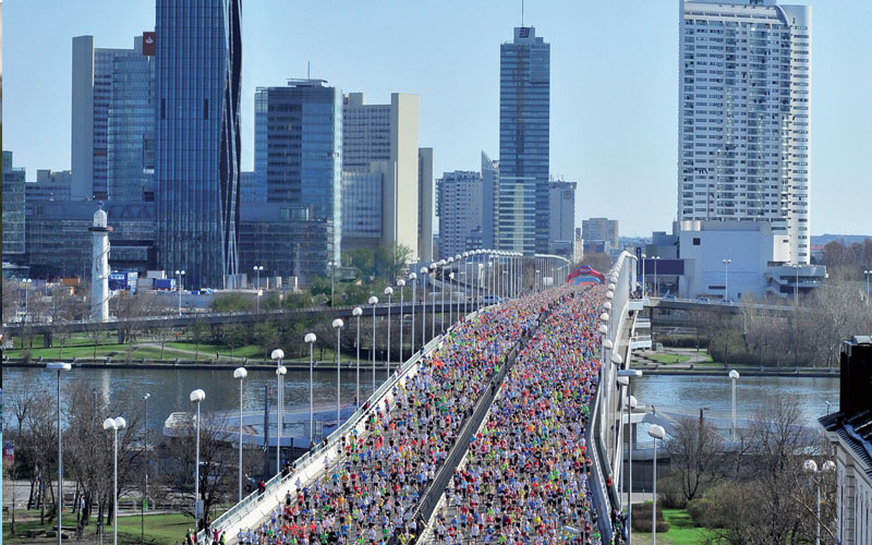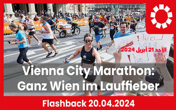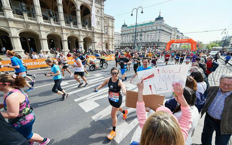 فقد شهد ماراثون فيينا اليوم الأحد الموافق 21 من أبريل في دورته الـ 41 إقبالا كبيرا من هواة العدو؛ حيث بلغ عدد المشاركين ما بزيد عن من 35 ألف مشترك ومشتركة حسب بيان الشرطة النمساوية من أكثر من 120 دولة. وتبلغ مسافة السباق 42.195 كيلومتر تخترق أحياء متعددة من العاصمة النمساوية فيينا.