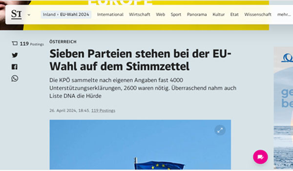 وأفاد بيان لوزارة الداخلية النمساوية اليوم بأنه تم إجراء مراجعة أولية للمرشحين، موضحا أن الترشيحات متوافقة قانونيًا مع قانون الانتخابات الأوروبية.