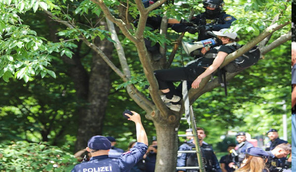 ونصب نحو 100 طالب المخيم صباح الأربعاء، غير أن قوات الشرطة النمساوية سارعت إلى فض المخيم في اليوم نفسه، وأرجعت السبب إلى “طبيعة المخيم التي تهدد النظام العام وتدعم الانتفاضة، وبالتالي تم تفريق التجمع بشكل رسمي”.