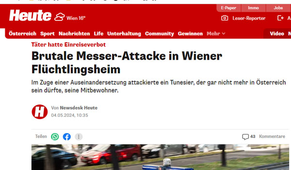 وقع هجوم بالسكين في مركز إيواء للاجئين، مساء أمس الجمعة، في فيينا-دوناوشتات، مما أسفر عن إصابة شخص بجروح طفيفة.