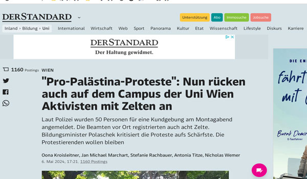بعد أسابيع من الاحتجاجات الطلابية في عدة جامعات بالولايات المتحدة رفضاً لحرب الإبادة الإسرائيلية على قطاع غزة، انطلقت شرارة الحراك في احد أعرق الجامعات الأوروبية بحامعة فيينا .