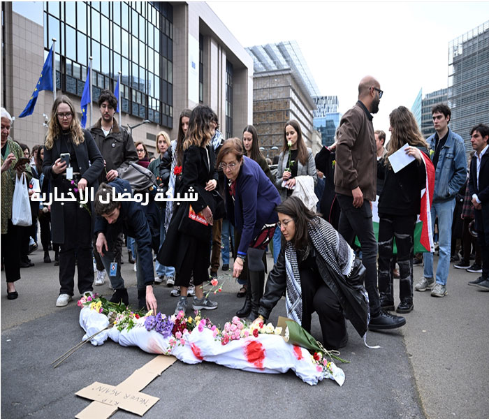 موظفون بالاتحاد الأوروبي ينظمون جنازة رمزية تضامناً مع غزة