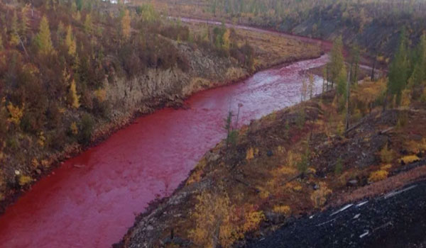 ووفق الصحيفة التي نشرت الخبر يقوم المحققون البيئيون التابعون للمجلس أيضاً بدراسة سبب تحول لون النهر إلى الأحمر المرعب، وهي مشاهد لا يمكن أن يتوقع شخص ما رؤيتها إلا في نهاية العالم..